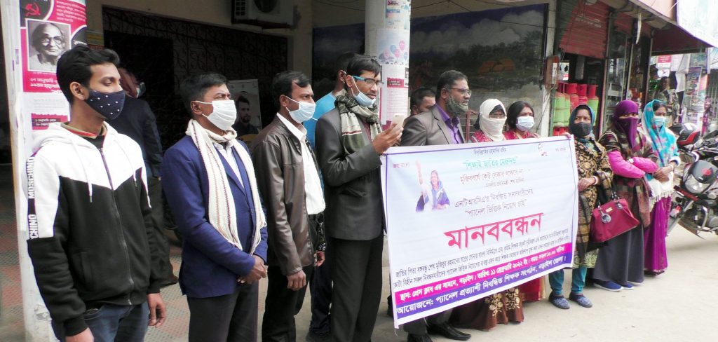 এনটিআরসিএ’র নিবন্ধিত সনদধারীদের প্যানেল ভিত্তিক নিয়োগের দাবিতে নড়াইলে মানববন্ধন অনুষ্ঠিত