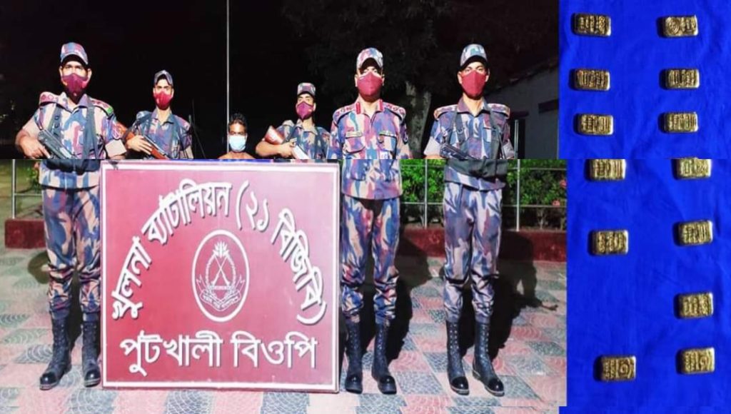 বেনাপোলের পুটখালী সীমান্তে বিজিবির অভিযানে ১৫ টি স্বর্ণের বারসহ আটক -১