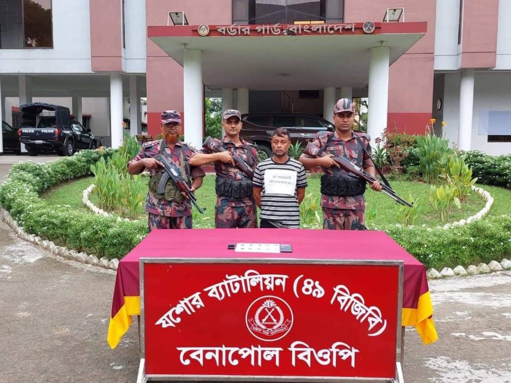 যশোরের বেনাপোল দিয়ে ভারতে পাচারের সময় ১০টি সোনার বারসহ মনিরুজ্জামান (৪০) নামে এক পাচারকারীকে আটক করেছে বিজিবি সদস্যরা।