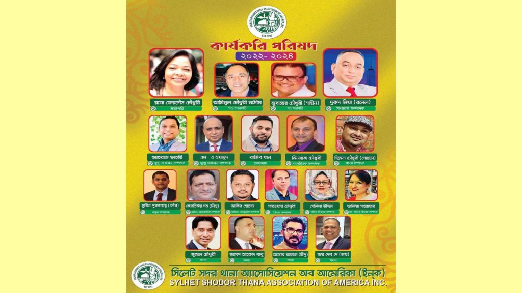 আমেরিকার ঐতিহ্যবাহী সংগঠন সিলেট সদর থানা এসোসিয়েশন অফ আমেরিকা ২০২২- ২০২৪ দুই বছরের জন্য তাদের নতুন নেতৃত্ব বেছে নিয়েছে। সিলেট সদর থানা এসোসিয়েশনের আহবায়ক কমিটি এবং সকল সাবেক নেতৃবৃন্দের মতামতের ভিত্তিতে দক্ষ সংগঠক রানা ফেরদৌসীকে সভাপতি এবং দুরুদ মিয়া রনেলকে সাধারণ সম্পাদক হিসেবে নির্বাচিত করা হয়েছে।