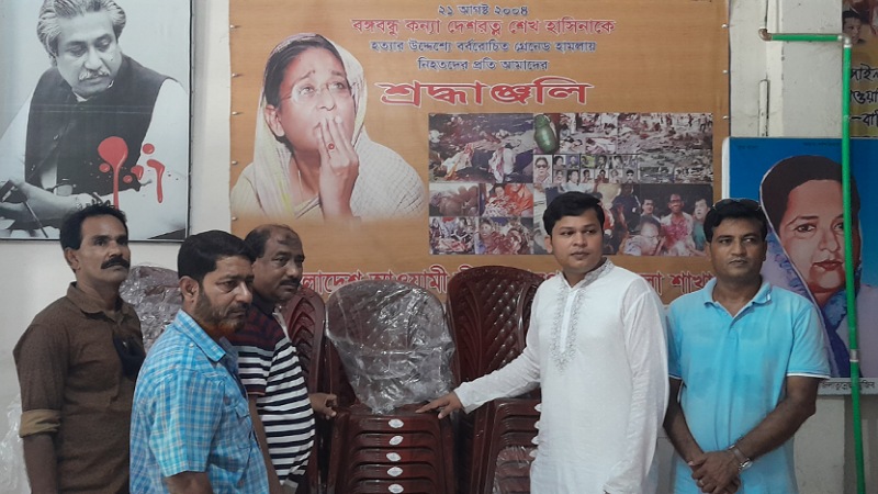 শুক্রবার (০৯ সেপ্টেম্বর) সকালে উপজেলা আওয়ামীলীগ অফিসে এ চেয়ার সমূহ উপহার হিসেবে প্রদান করেন। সে উপজেলার ধুবড়িয়া এলাকার মোঃ মোশারফ হোসেনের সুযোগ্য ছেলে মোঃ সাজ্জাদ হোসেন।