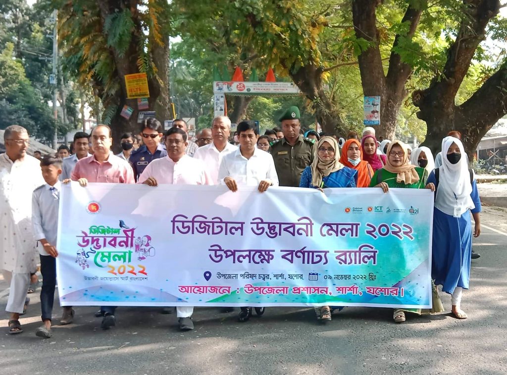 যশোরের শার্শা উপজেলায় ডিজিটাল উদ্ভাবনী মেলার উদ্বোধন উপলক্ষে বর্ণাঢ্য র্যালী ও আলোচনা সভা অনুষ্ঠিত হয়েছে।
