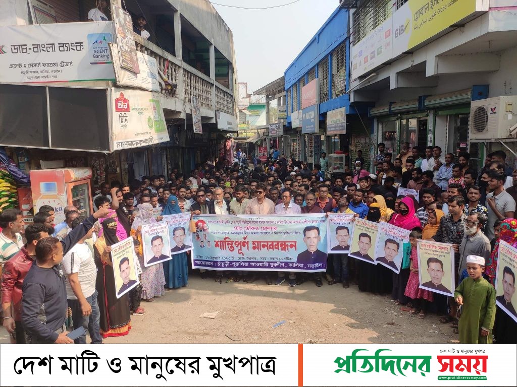 ভিন্নগ্রামের কোন্দলের মামলার আসামী করে যুবলীগ নেতা তৌরুত মোল্যকে (৪২) কারাগারে পাঠানো হয়েছে। এই অভিযোগে বিক্ষোভ ও মানববন্ধন হয়েছে নড়াইলের কালিয়ার চাচুড়ী বাজারে।