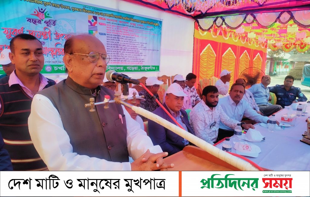 বৃহস্পতিবার দুপুরে ঠাকুরগাঁও সদর উপজেলার গড়েয়া ইউনিয়নের চখমিল বহুমুখী উচ্চ বিদ্যালয়ের ৫০ বছর পূর্তিতে আয়োজিত সুবর্ণ জয়ন্তী অনুষ্ঠানের আলোচনা সভায় প্রধান অতিথির বক্তব্যে তিনি এ কথা বলেন।