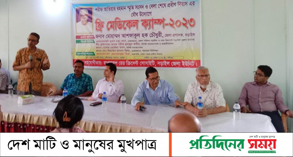 নড়াইল শহরের বিশিষ্ট শিক্ষাবিদ শরীফ আতিয়ার রহমান স্মৃতি সংসদ বিগত এক বছর ধরে বিনামূল্যে জেলার বিভিন্ন এলাকায় চিকিৎসাসেবা দিয়ে আসছে। শনিবার (২৯ এপ্রিল) নড়াইল সদর উপজেলার শাহাবাদ ইউনিয়নের গোপীন্তপুর বেলাশেষে প্রবীণনিবাস নামে একটি বৃদ্ধাশ্রমে এলাকার কয়েকশ অসহায় মানুষকে চিকিৎসাসেবা প্রদান করা হয়। শরীফ আতিয়ার রহমান স্মৃতি সংসদ এবং বেলাশেষে প্রবীণ নিবাস যৌথ উদ্যোগে এই সেবা দেয়া হয়। দিনব্যাপী চিকিৎসাসেবায় এলাকার প্রায় ৩৫৭ জন রোগিকে চিকিৎসাসেবা প্রদান করেন শরীফ পরিবারের ৬ জনসহ আরো ১০ জন দেশ বরেণ্য চিকিৎসক। জেলা রেড ক্রিসেন্ট সোসাইটির সদস্যরা চিকিৎসাসেবার সার্বিক সহযোগিতা করে।