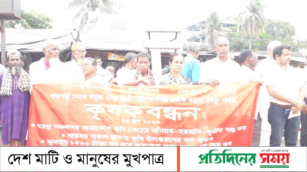 চলতি মৌসুমে সরকার ধানের দাম মণপ্রতি ১ হাজার ২শ টাকা নির্ধারণ করে। কিন্তু উৎপাদন খরচের তুলনায় এটা যথেষ্ট নয় উল্লেখ করে বক্তারা উৎপাদন খরচের সঙ্গে ৫০ শতাংশ অতিরিক্ত যুক্ত করে ধানের দাম কমপে ১ হাজার ৫শ টাকা নির্ধারণ করার দাবি জানানো হয় কৃষকবন্ধনে। একই সাথে বরেন্দ্র অঞ্চলসহ সারাদেশে কৃষি সেঁচে অনিয়ম, হয়রানি, দুর্নীতি বন্ধসহ সময়মত ন্যায্য দামে সেঁচের পানি বিতরণ নিশ্চিত করা, প্রকৃত কৃষকদের কৃষি কার্ড দেওয়া, শস্য বীা ও পল্রী রেশন চালু করাসহ সকল প্রকার কৃষি উপকরণের দাম কমার দাবি জানানো হয়। শেষে বাসষ্ট্যান্ড থেকে চৌরাস্তা পর্যন্ত বিক্ষোভ মিছিল করা হয়।