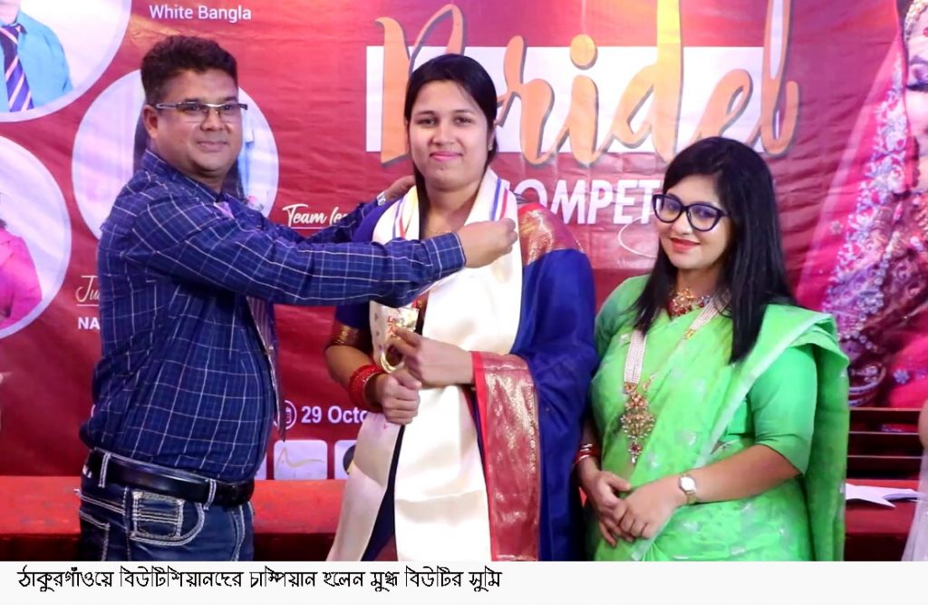 ঠাকুরগাঁও প্রতিনিধি \ ঠাকুরগাঁওয়ে বিউটিশিয়ানদের নিয়ে ব্রাইডাল প্রতিযোগিতা অনুষ্ঠিত হয়েছে। প্রতিযোগিতায় অংশগ্রহণ কারীদের মধ্যে চ্যাম্পিয়ন হয়েছেন জেলার মুগ্ধ বিউটি মেকওভারের স্বত্বাধিকারী সুমি আক্তার।