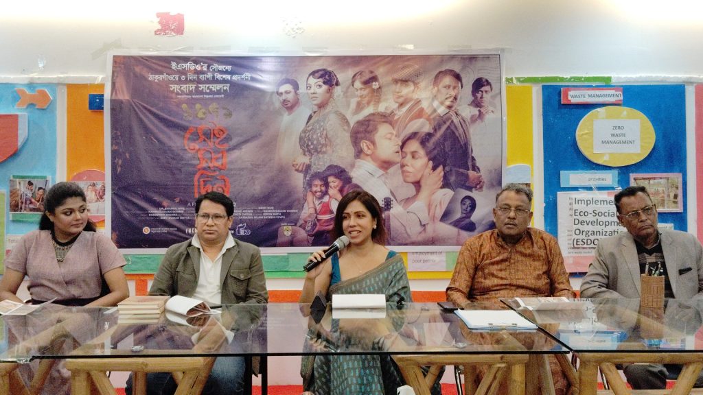 Thank you for reading this post, don't forget to subscribe!ইএসডিও’র আয়োজনে প্রেস কনফারেন্সে বক্তব্য দেন চলচিত্রটির শিল্প নির্দেশক নাট্য অভিনেতা লিটু আনাম, চিত্রনাট্য ও পরিচালক হৃদি হক, অভিনেত্রী মৌসুমি হামিদ, ইএসডিও’র প্রতিষ্ঠাতা নির্বাহী পরিচালক ড. মুহম্মদ শহীদ উজ জামান, ইকো পাঠশালা এন্ড কলেজের অধ্যক্ষ ড. সেলিমা আখতার, ঠাকুরগাঁও প্রেসক্লাব সভাপতি মনসুর আলী, সাধারণ সম্পাদক লুৎফর রহামান মিঠু, চলচিত্রটির চিত্রগ্রাহক মেহেদি রনি, ফরহাদ হোসেন প্রমুখ। এ সময় জেলায় কর্মরত বিভিন্ন প্রিন্ট ও ইলেকট্রনিক মিডিয়ার সাংবাদিকবৃন্দ উপস্থিত ছিলেন।