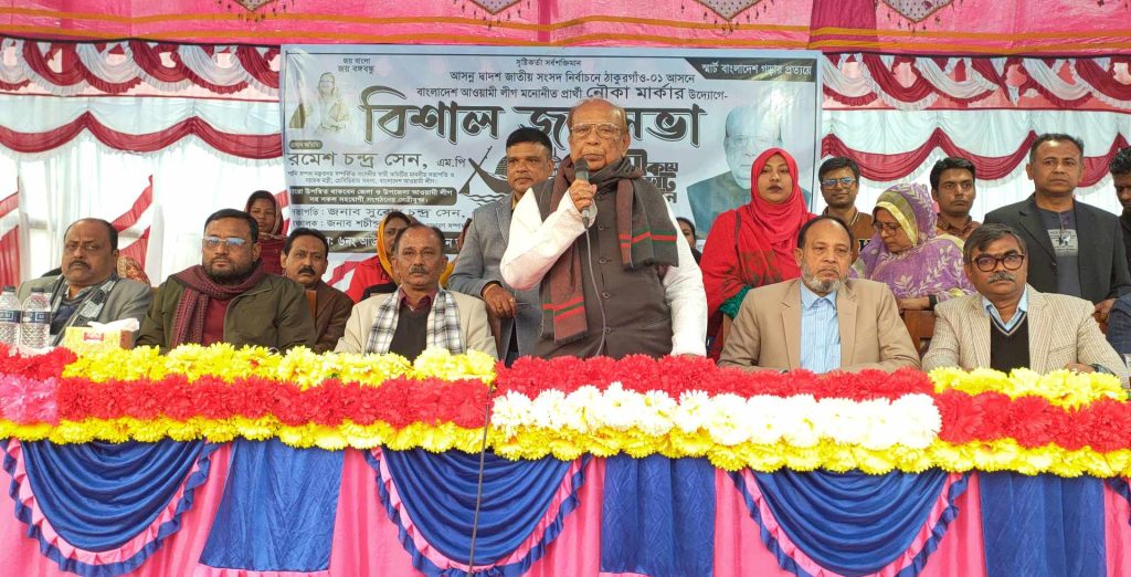 Thank you for reading this post, don't forget to subscribe!শনিবার বিকেলে (৩০ ডিসেম্বর) ঠাকুরগাঁও সদর উপজেলার আউলিয়াপুর ইউনিয়ন আওয়ামী লীগ আয়োজিত নৌকার মার্কার বিশাল জনসভায় প্রধান অতিথির বক্তব্যে নৌকার প্রার্থী রমেশ চন্দ্র সেন এ কথা বলেন।