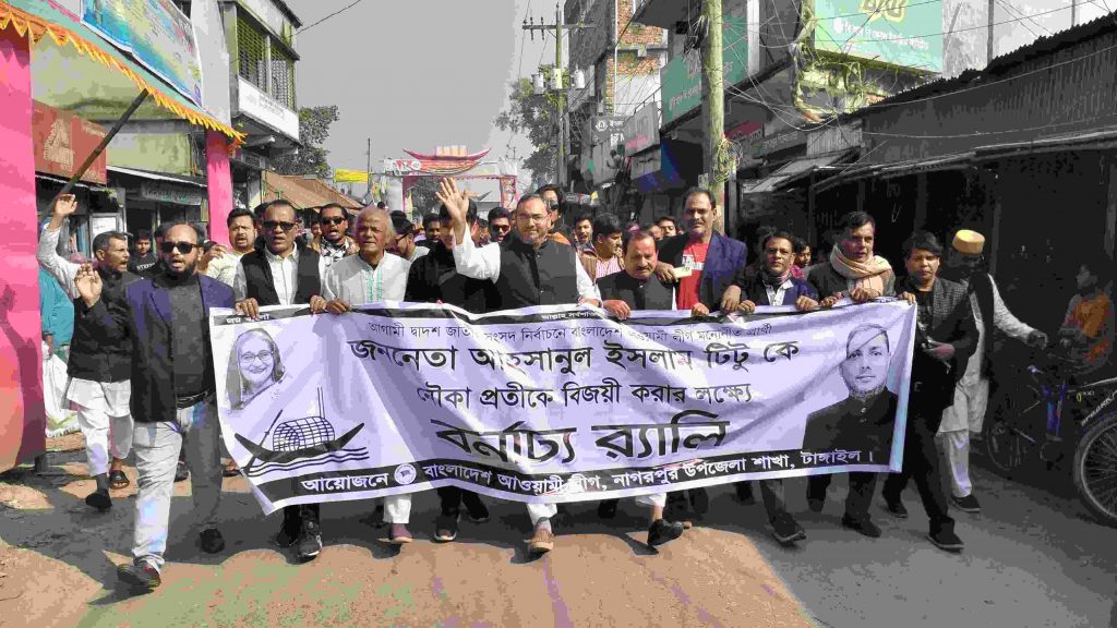 দ্বাদশ জাতীয় সংসদ নির্বাচনে বাংলাদেশ আওয়ামী লীগের মনোনিত প্রার্থীকে বিজয়ী করার লক্ষ্যে টাঙ্গাইলের নাগরপুরে বর্ণাঢ্য র্যালী অনুষ্ঠিত হয়েছে। মঙ্গলবার সকালে নাগরপুর উপজেলা আওয়ামীলীগ আয়োজিত র্যালীটি সদর বাজারের কাঁচা বাজারসহ গুরত্বপূর্ণ সড়ক প্রদক্ষিণ করে। র্যালীতে প্রধান অতিথি হিসেবে উপস্থিত ছিলেন, টাঙ্গাইল-৬ (নাগরপুর-দেলদুয়ার) আসনে নৌকা প্রতিকের মনোনীত প্রার্থী আহসানুল ইসলাম টিটু।