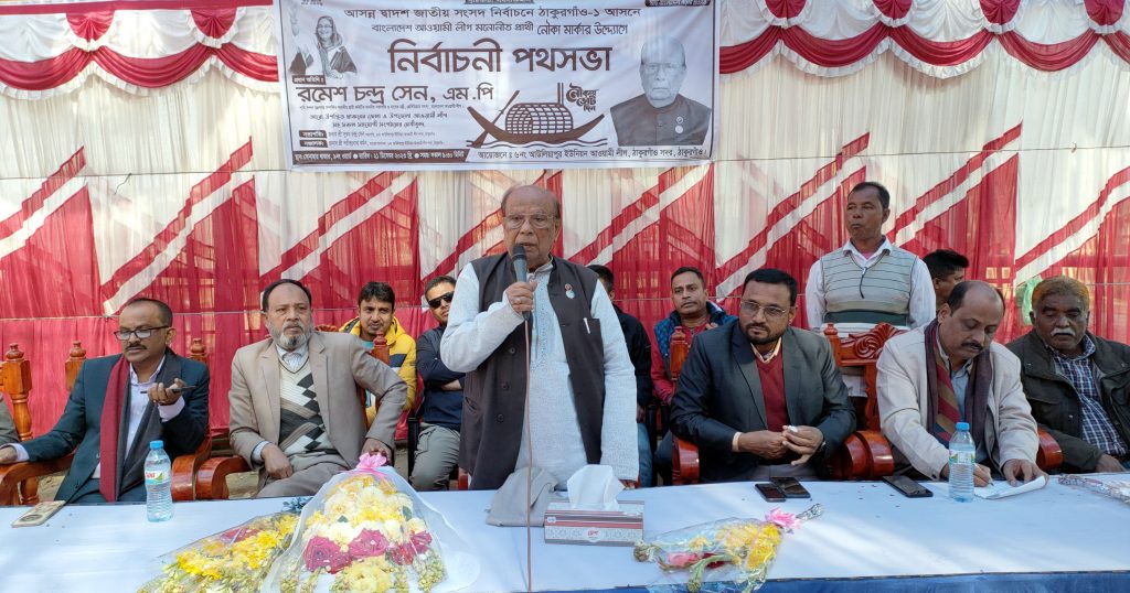 নৌকার প্রার্থী রমেশ চন্দ্র সেন বলেন, আমি পানিসম্পদ মন্ত্রণালয়ের মন্ত্রী ও খাদ্য মন্ত্রী হিসেবে দায়িত্বে ছিলাম; এসময় নিষ্ঠার সঙ্গে কাজ করেছি। পাশাপাশি ঠাকুরগাঁও সদর আসনের উন্নয়নের জন্য নিরলসভাবে কাজ করেছি; আজ ঠাকুরগাঁও সদর আসনের প্রত্যেক জায়গায় উন্নয়ন পৌঁছে দিয়েছি। ঠাকুরগাঁও সদর আসনের বিশাল উন্নয়নযজ্ঞের কাজ করা সম্ভব হয়েছে শুধুমাত্র আওয়ামী লীগ সরকারের জন্যই; আর মাননীয় প্রধানমন্ত্রী শেখ হাসিনার জন্যই।