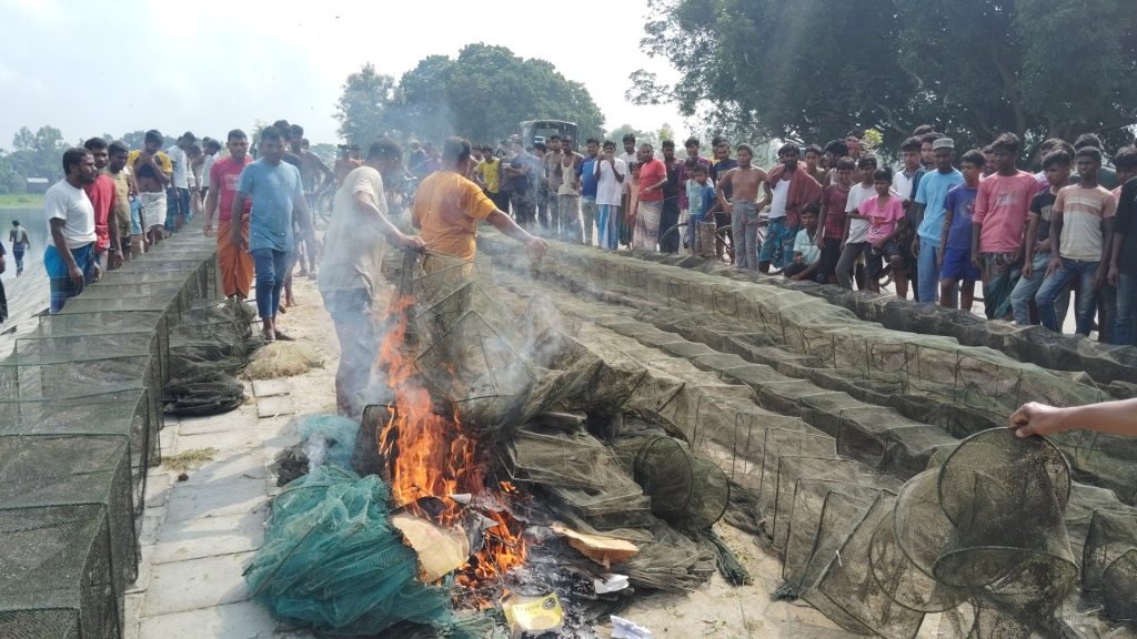 পরে পুলিশ, স্থানীয় জনপ্রতিনিধি ও এলাকাবাসীর উপস্থিতিতে জব্দকৃত জালগুলো ঘটনাস্থলেই পুড়িয়ে ধ্বংস করা হয়।