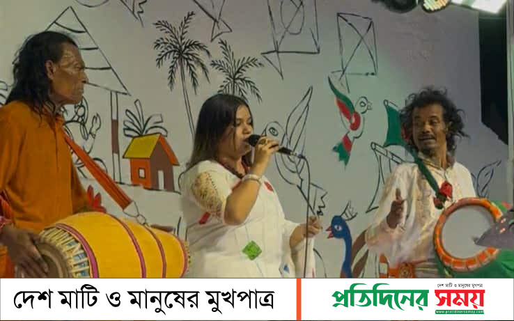 ঠাকুরগাঁও প্রতিনিধি: কুষ্টিয়ার ছেঁউড়িয়ায় ফকির লালন শাহের স্মরণে আয়োজিত তিন দিনব্যাপী ঐতিহ্যবাহী লালন উৎসবে অংশ নিয়ে গান পরিবেশন করেছেন ঠাকুরগাঁওয়ের বাউল শিল্পী রুমা আক্তার। যিনি বাউল জগতে পরিচিত বাউল রুমা নামে। তাঁর প্রাণবন্ত কণ্ঠে পরিবেশিত লালনের ভাবগান শ্রোতা-দর্শকদের মন ছুঁয়ে যায়।